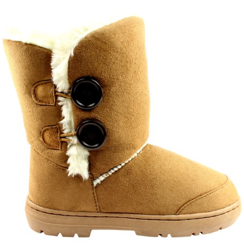 Womens Twin Button Fully Fur Lined Waterproof Winter Snow Boots